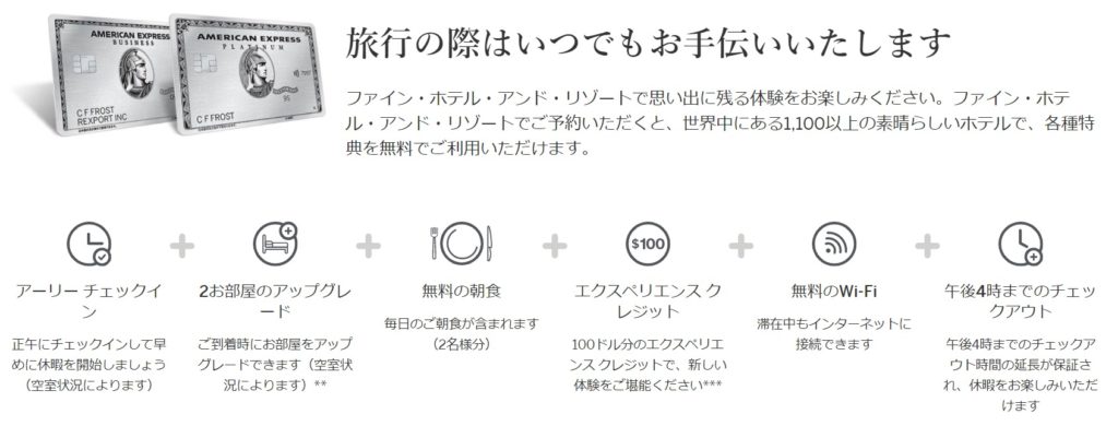 このFHRを使った時のアップグレード1回だけで年会費の元を取ったという経験談をネット上でよく見かけるくらいうまく使えばとてもお得なベネフィットです。