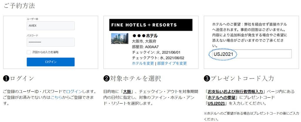 アメックスプラチナカード等の特典であるファイン・ホテル・アンド・リゾート(FHR)のプランで2021年4~6月の期間中に大阪市内の対象ホテルに宿泊すると、1泊1室につきユニバーサル・スタジオ・ジャパン(USJ) スタジオ・パスを1枚プレゼントというキャンペーンが開催中です。キャンペーンの内容、FHRについて解説します。