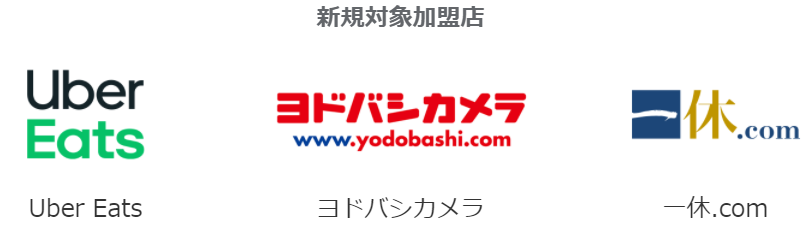 2018年にこのサービスが開始してからは対象加盟店は以下の5つでした