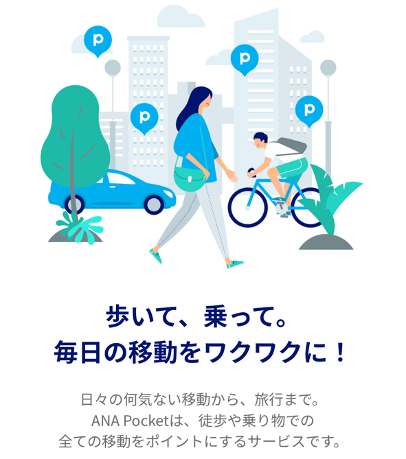 ANA Pocketは、飛行機の移動だけでなく、電車、自動車、自転車、徒歩などのさまざまな移動手段でポイントを貯められるアプリです。