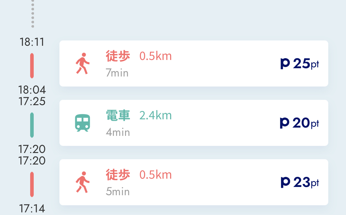 | 徒歩 | 50ポイント |