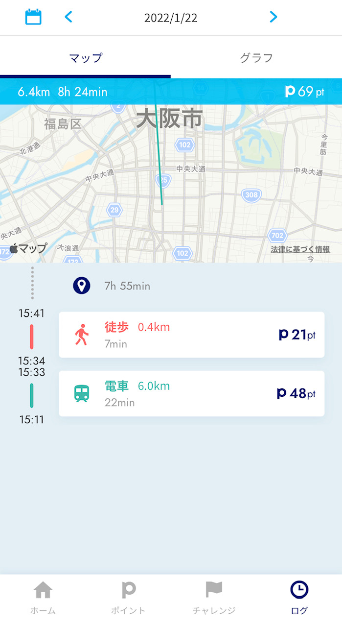 移動によりポイントが貯まる