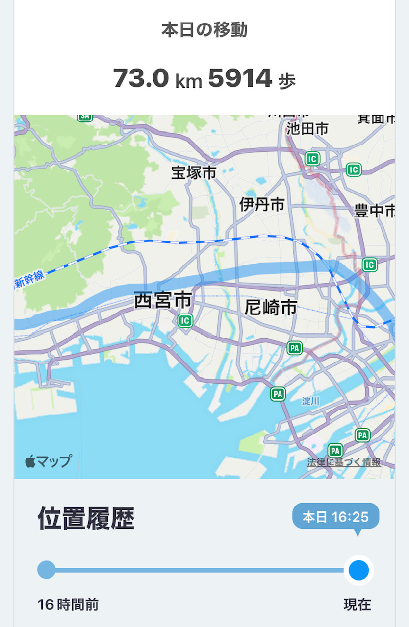 この日は地下鉄に乗っていたのですが途中から急に認識されました…しかも朝から移動していたのに午前の移動は全く認識されず