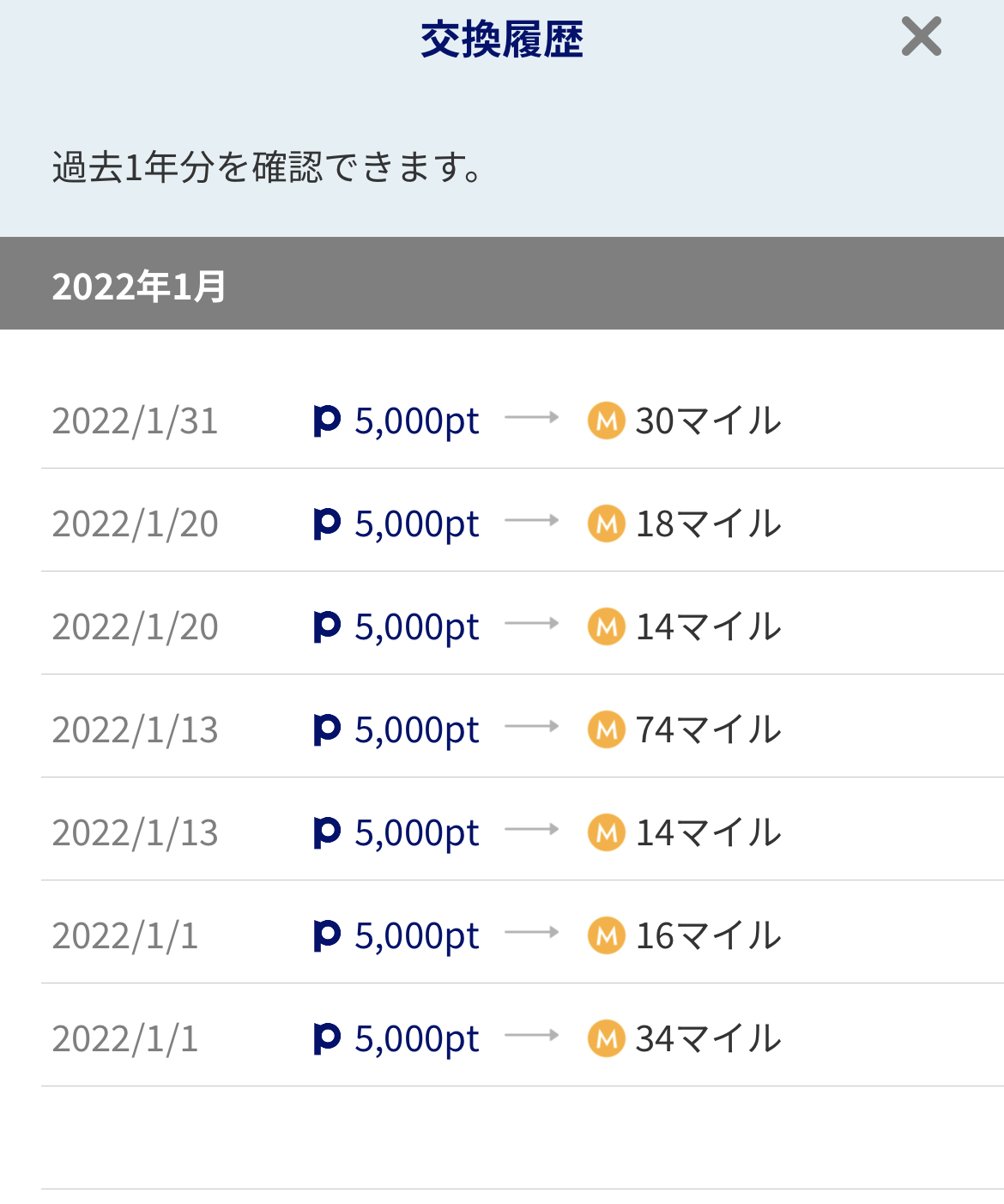 | 5,000ポイント | 10回 | 74マイル |
