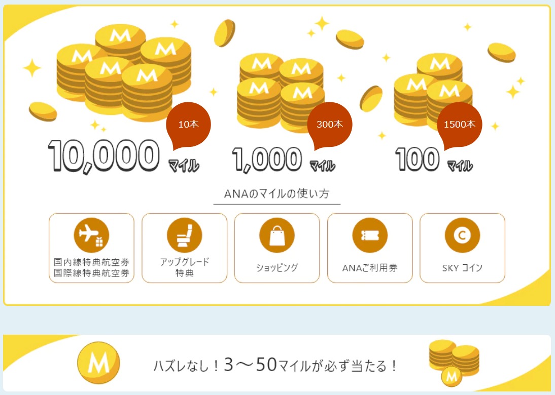 | マイルガチャ | ANAマイル | ANA Pocket Pro(月額550円)加入が必要 |