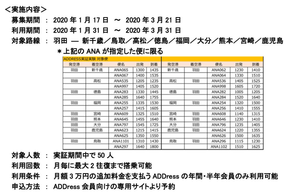 つまり、残念ながら今回の航空券サブスクリプションサービス(航空券定額制)実証実験の対象は「ADDress(アドレス)」の加入者に限られます。