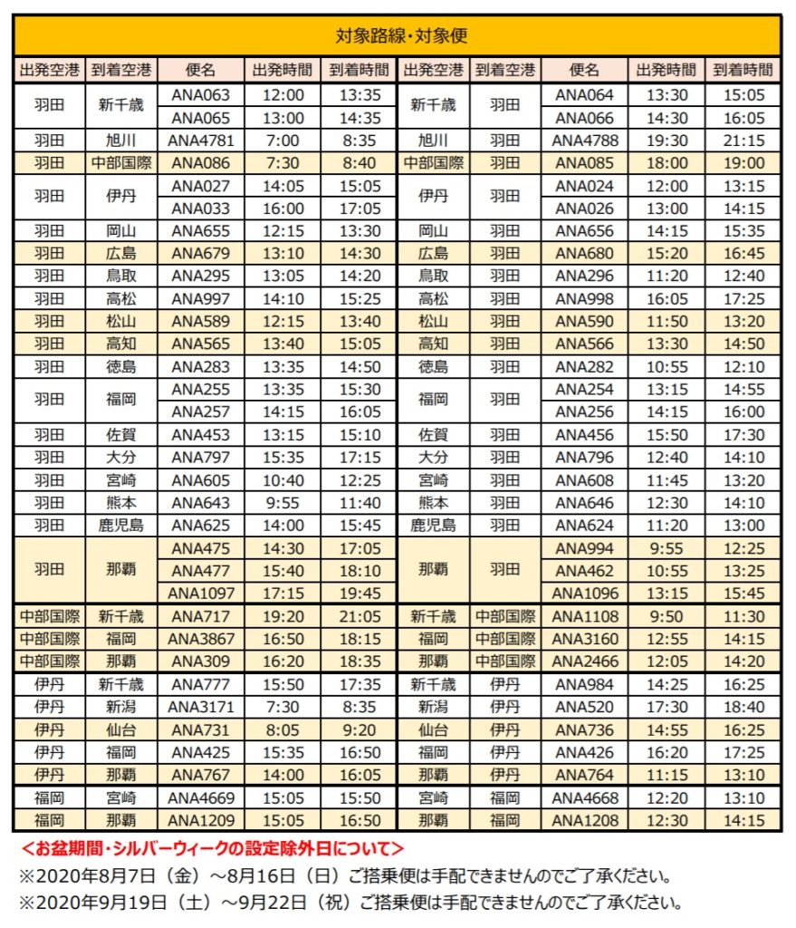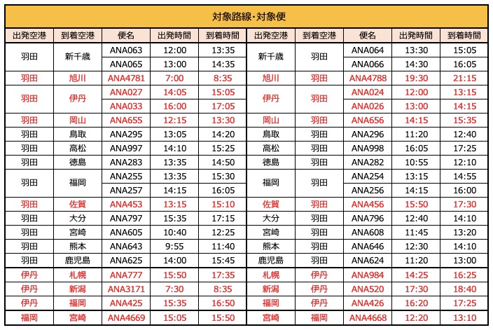 *上記のANAが指定した便に限る。「★」は新規の利用可能空港