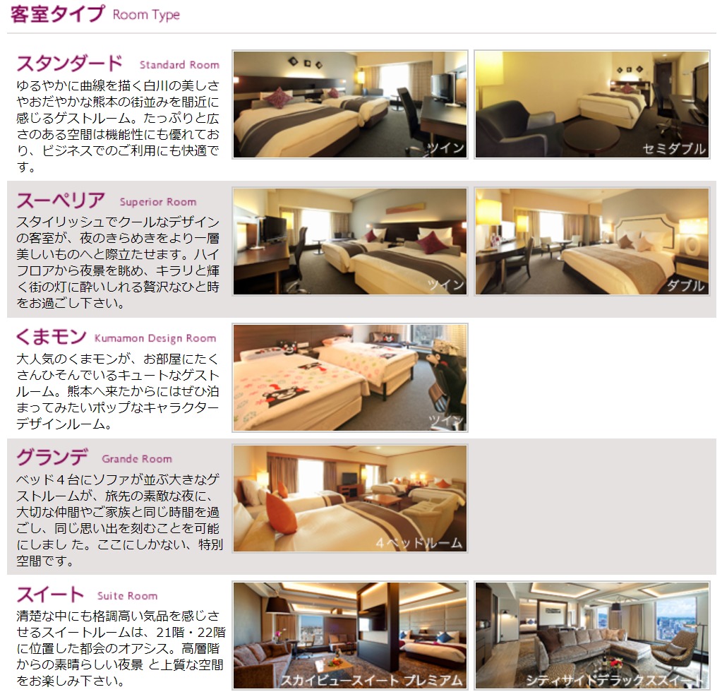 ANAクラウンプラザホテル熊本ニュースカイ客室のタイプ