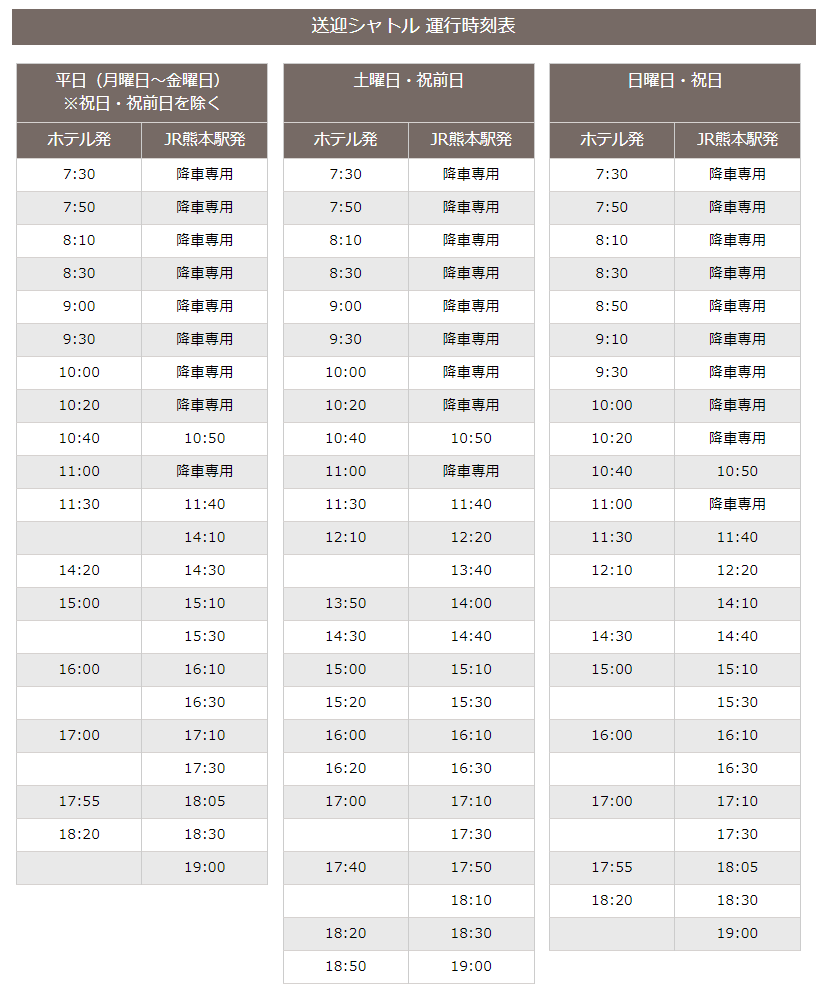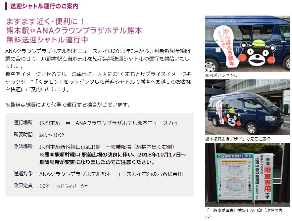 JR熊本駅から車で5分程度の場所となります。JR熊本駅からは無料送迎シャトルが運行しているようです