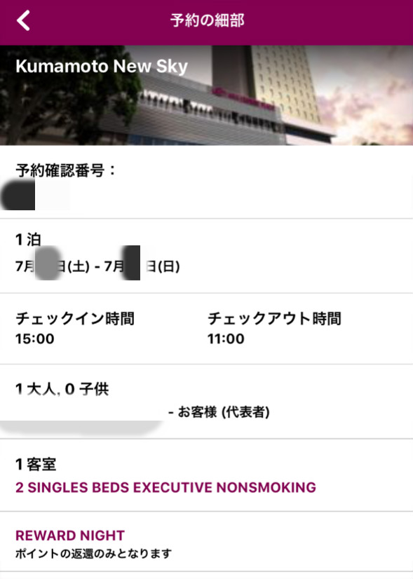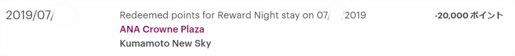 ANAクラウンプラザホテル熊本ニュースカイの無料宿泊に必要なポイントは20000ポイントとなります