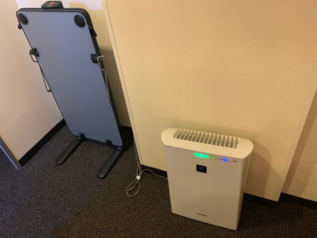 その横にはアイロン台、空気清浄機が置かれています