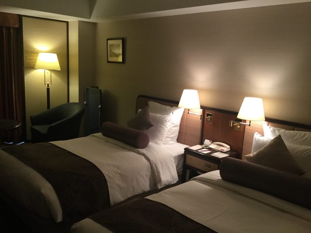 ゴールド会員でANAクラウンプラザホテル京都に初めて宿泊した時はこちらの部屋でした。何回か宿泊しているうちにゴールド会員でもペントハウスツインルームにアップグレードして頂く機会が増えましたので宿泊回数もある程度考慮されているのかなぁと思います。こちらのスタンダードツインルームは未改装の部屋になります