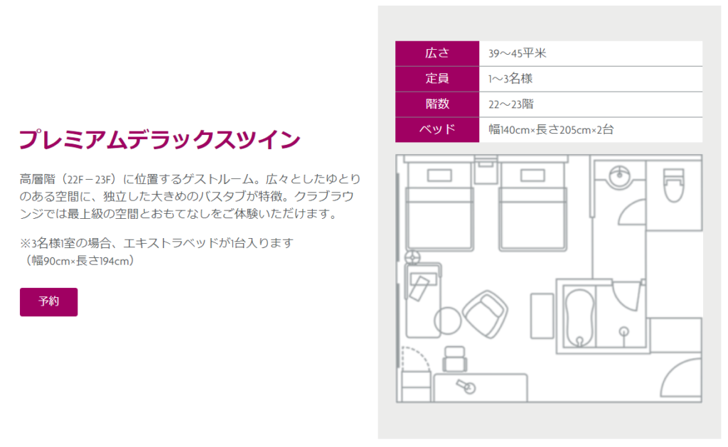 今回は23階プレミアムクラブフロア プレミアムデラックスツインに宿泊しました!