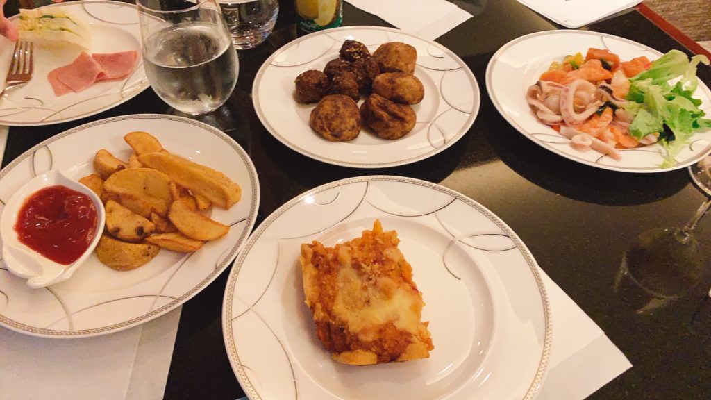 こんな感じで頂きました!ドリアやポテト、たこ焼きがあり、お腹いっぱいになりました