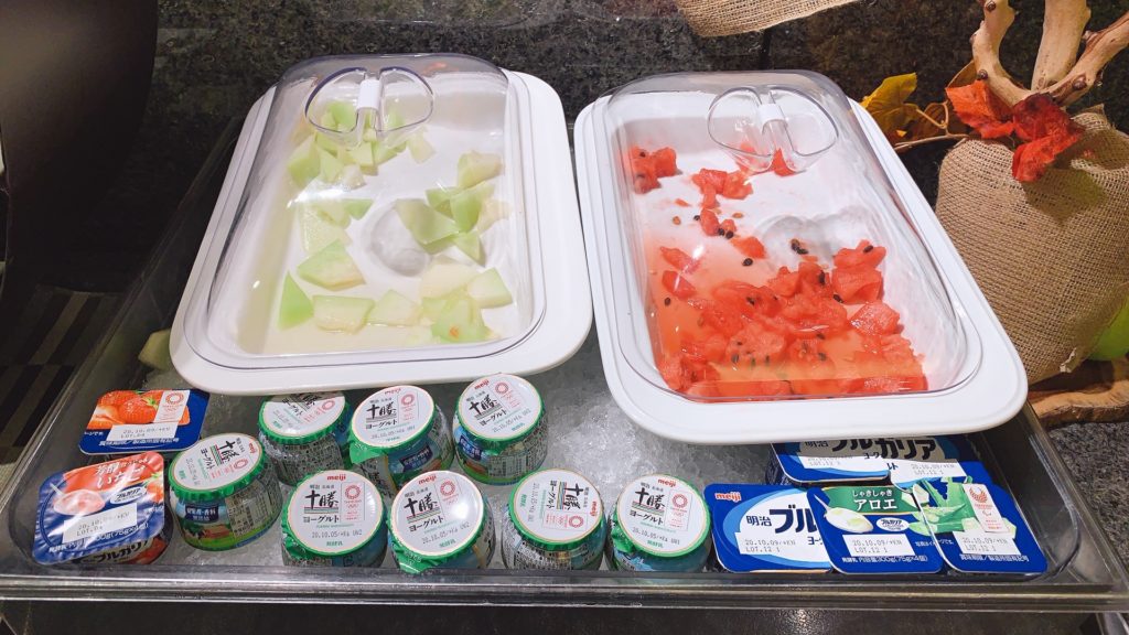 メロン、スイカ、プレーンヨーグルト、アロエヨーグルト