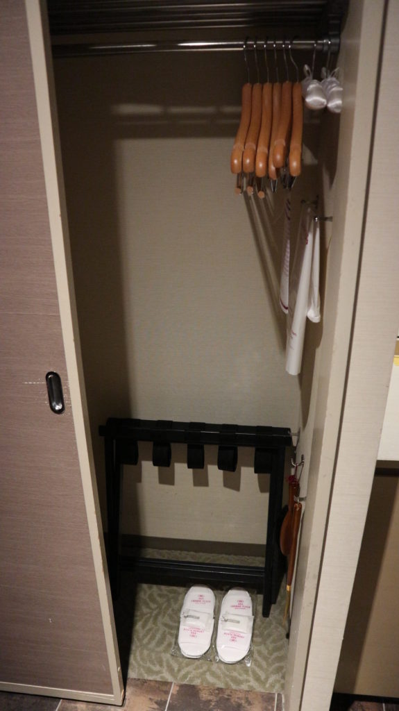 入口入って左側のクローゼット内はこのような感じになっています。今回は3泊したためスーツなど着替えも多かったのでハンガーも多く有難かったです。