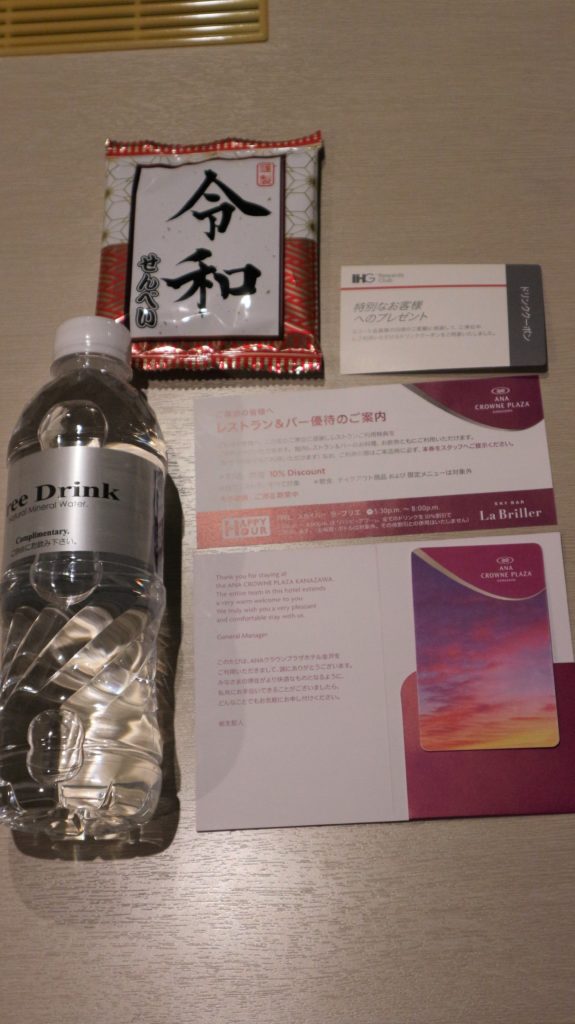 IHGプラチナ会員特典およびチェックイン時に頂いたもの