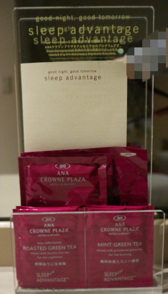 上にはANAクラウンプラザホテルでよく見かける「sleep advantage(スリープ・アドバンテージ)」シリーズのアメニティが置かれています。