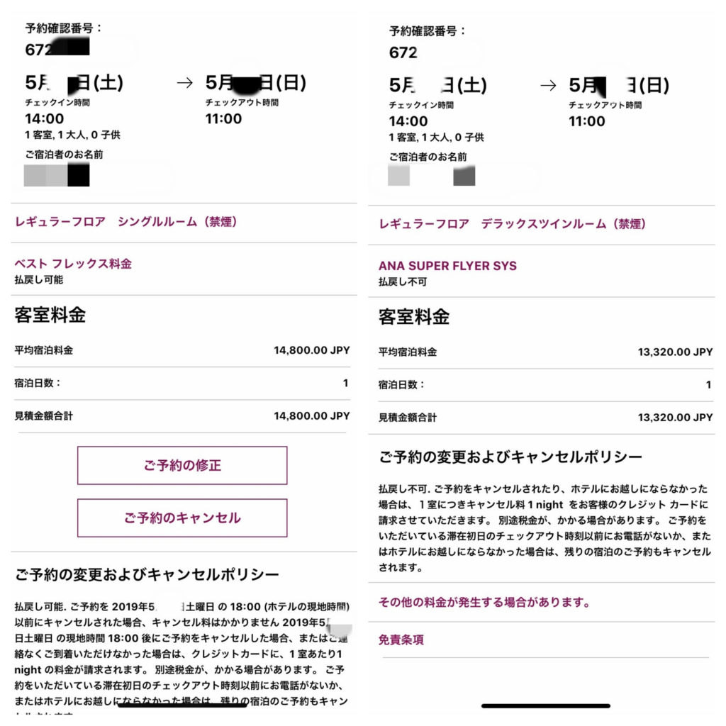 今回はもともとは下の画像左のようにレギュラーフロアシングルルームで予約していました。