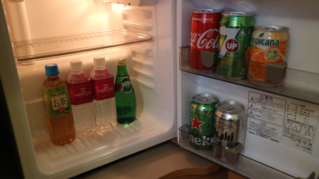 冷蔵庫の中はこんな感じになっています。ミネラルウォーターは無料でした。