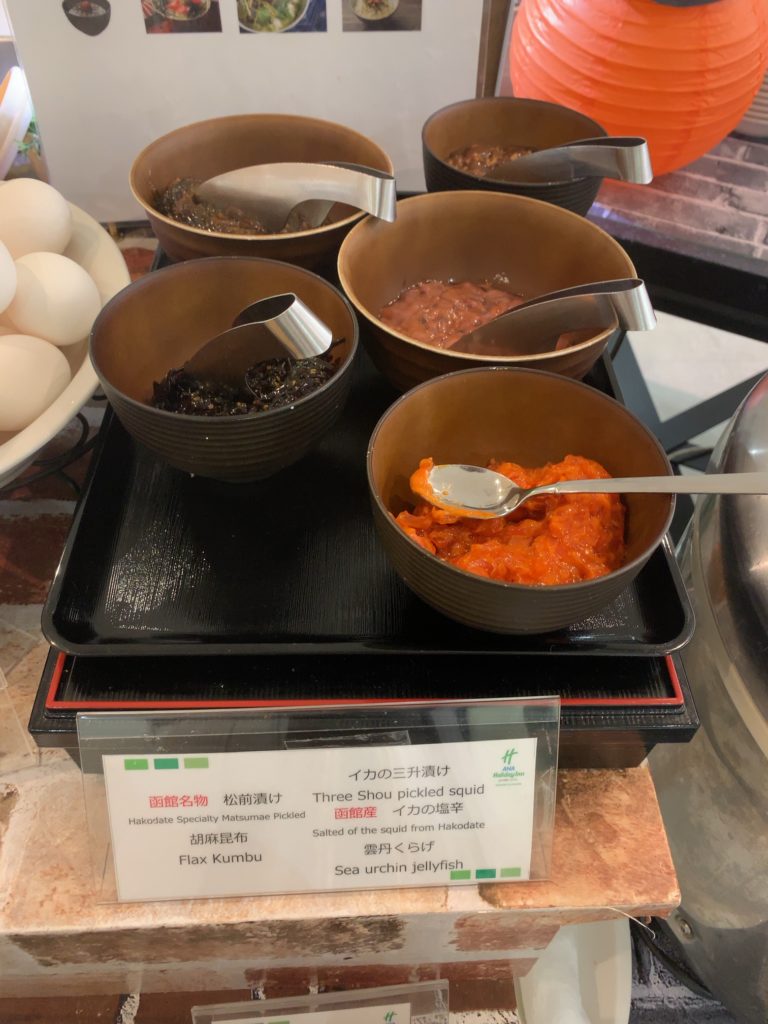 ANAホリデイイン札幌すすきの「ヴェルデ」朝食ビュッフェを2日間頂きましたので全メニュー、2日間で違ったメニューをご紹介します。北海道の食材を中心としたビュッフェで特にごはんの友の種類が多いのが印象的でした。日替わりメニューも用意されており連泊しても飽きない朝食ビュッフェとなっています。