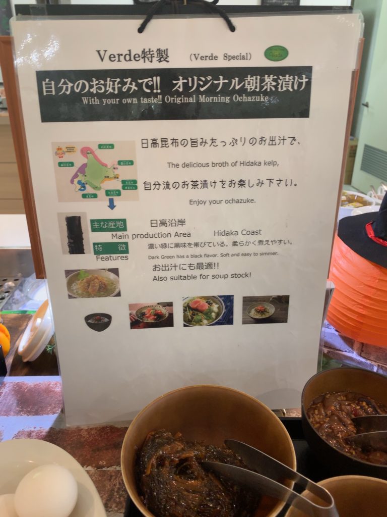 日高昆布の出汁も置いてあってオリジナル朝茶漬けの勧めがあったりします