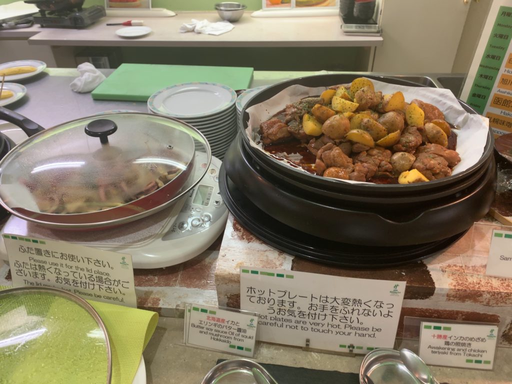 北海道食材を中心とした約60種類の料理が用意されています。また、曜日で替わる北海道のこだわりライブメニューもあり、その他にも日替わりメニューがあるため連泊しても飽きることはありません。