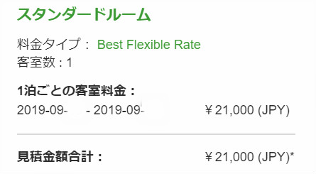 金曜日は当初はベストフレックス料金21000円/泊で予約しました。