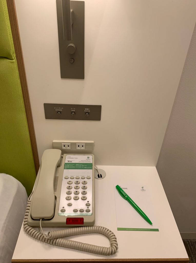枕元にはコンセントが2口。電話はレトロです(笑)
