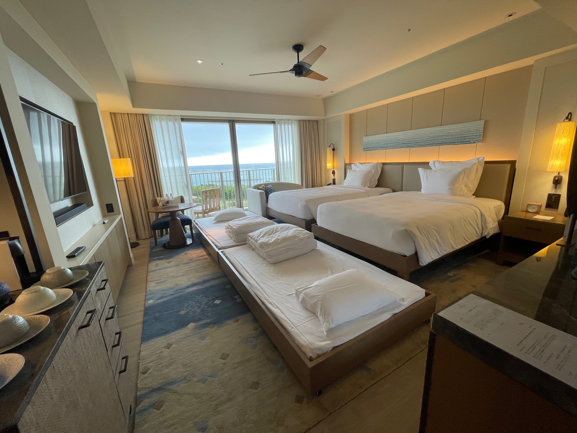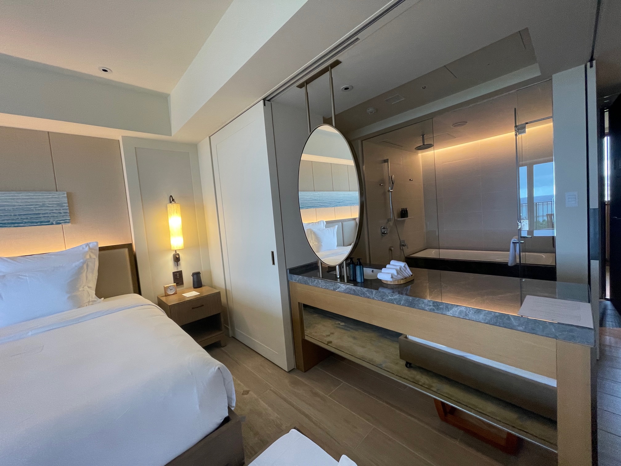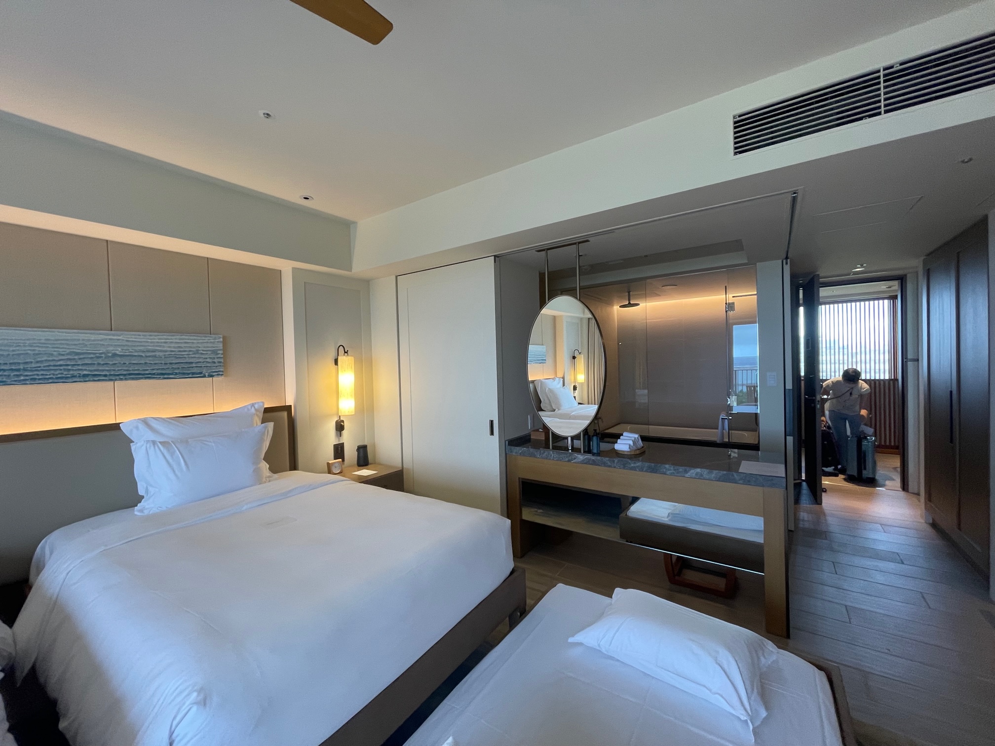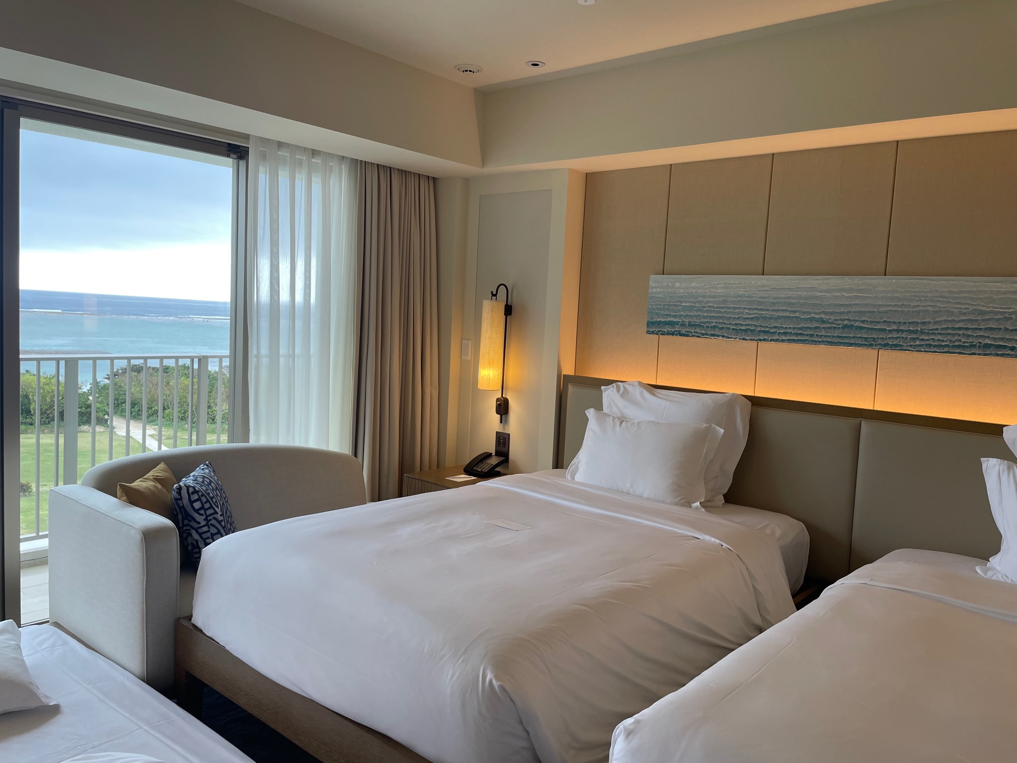 インターコンチネンタル石垣リゾート デラックスベイルームの室内の様子をご紹介します。2020年にオープンした新棟「ベイウイング」は海外のリゾートのような雰囲気で既存のオーシャンウイングとは全く別のホテルのようです(笑)