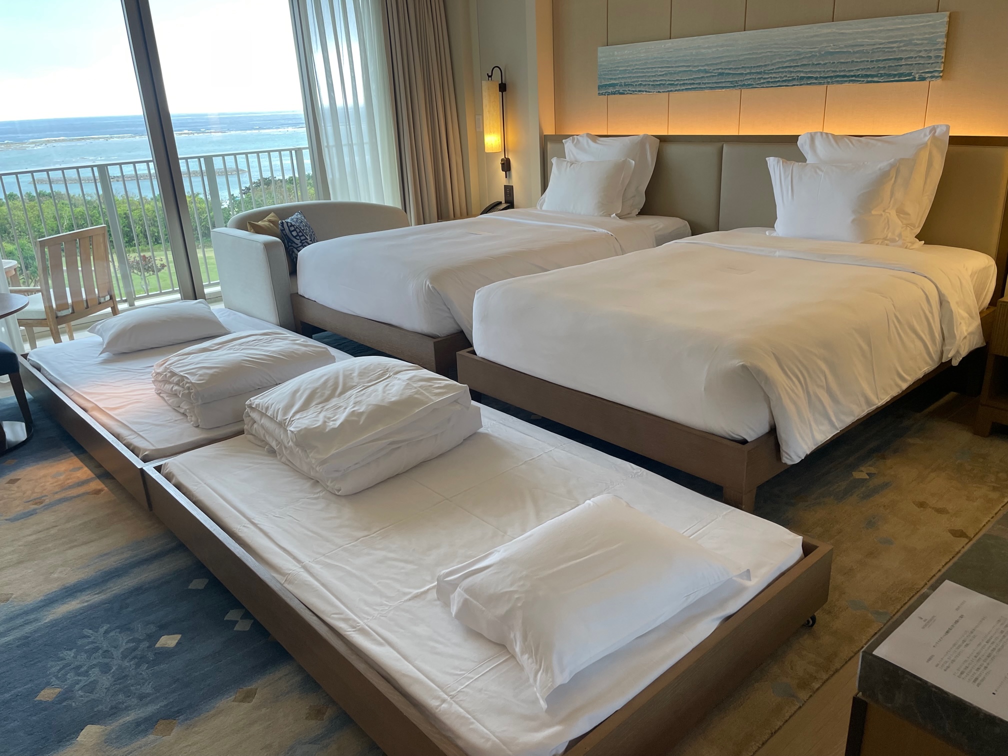 今回は大人2名、小学生2名での宿泊ですのでエキストラベッドが2台入ってかなり狭くなります