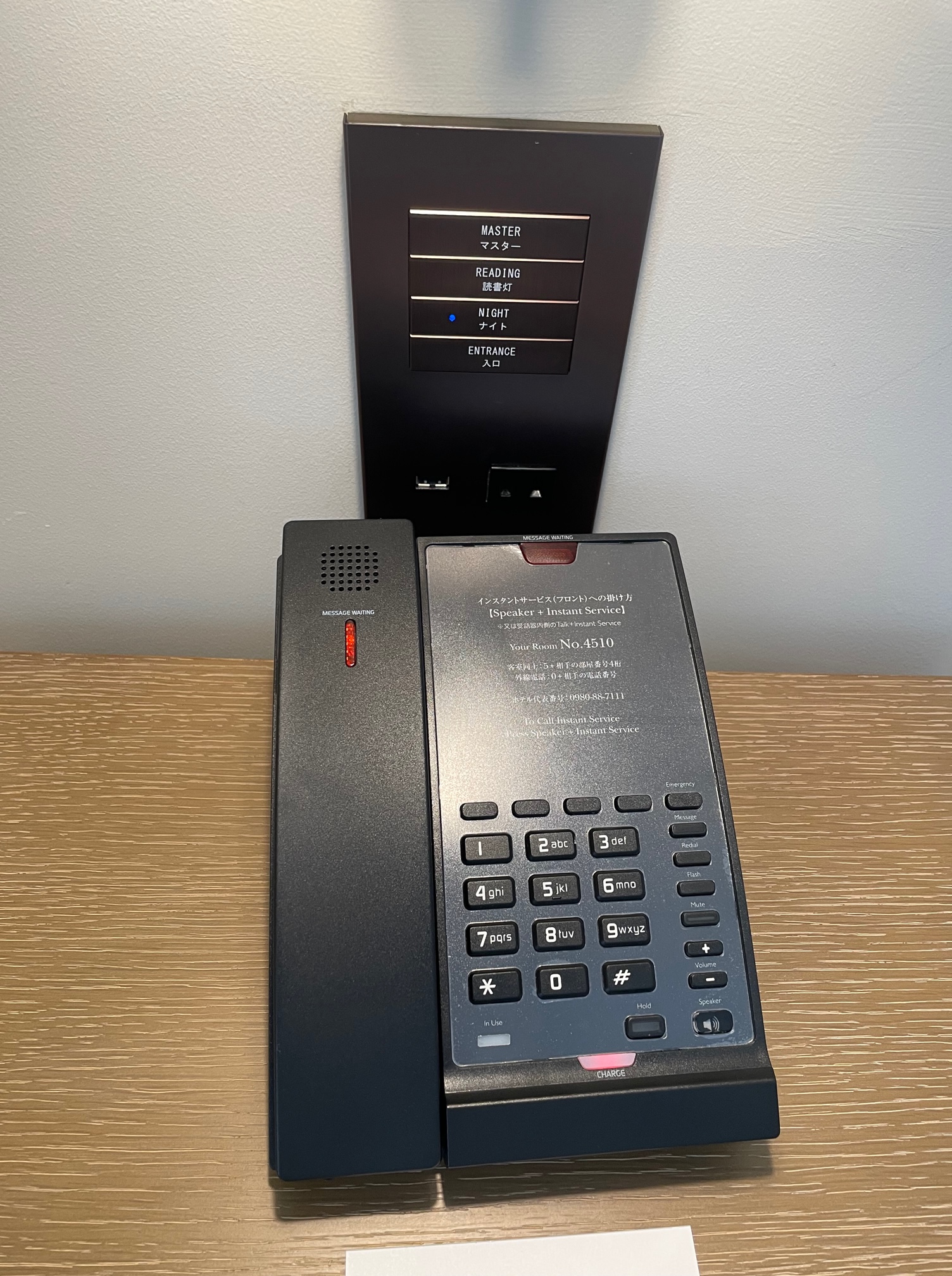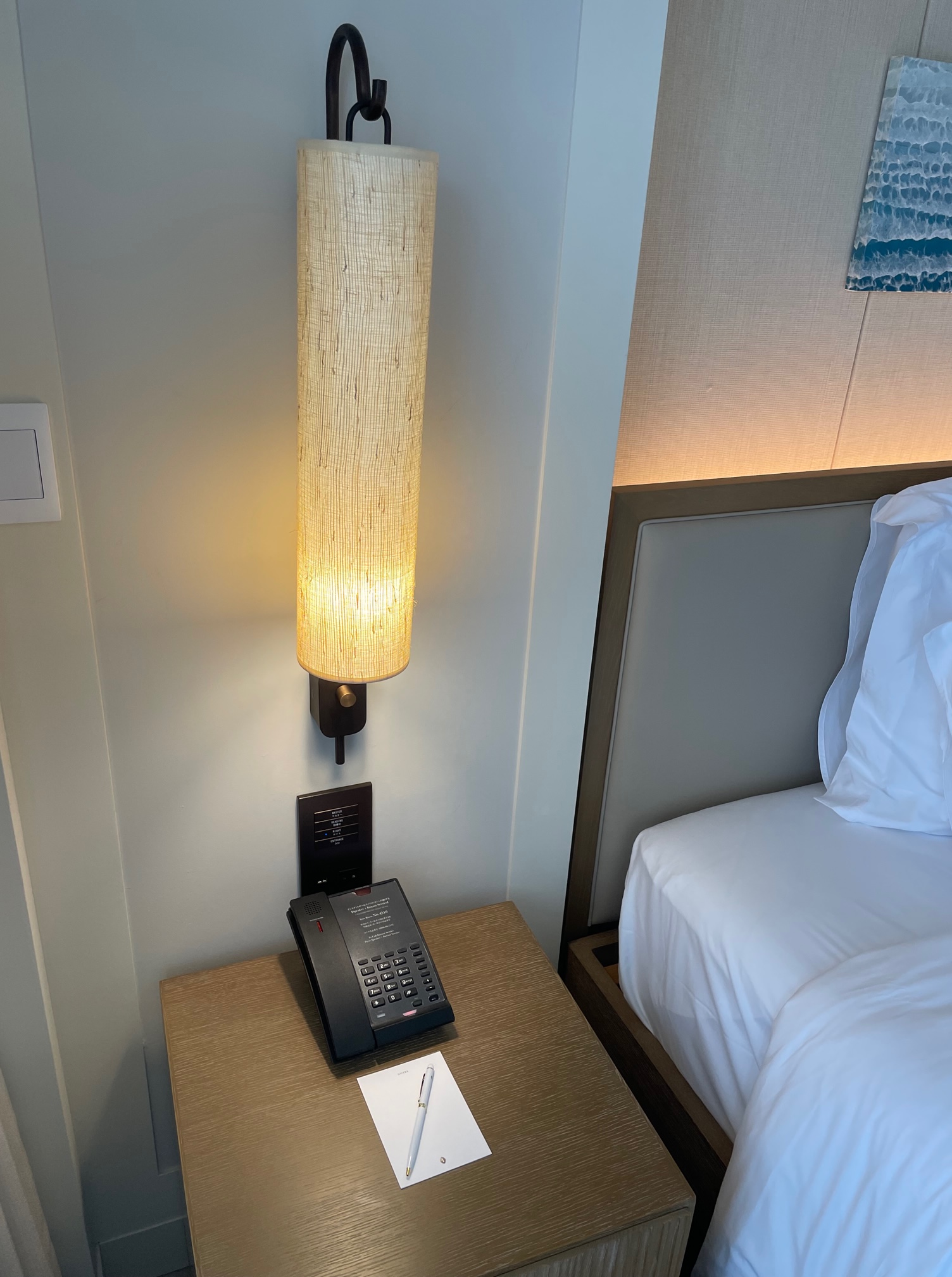 ベッド左側には電話とメモ帳