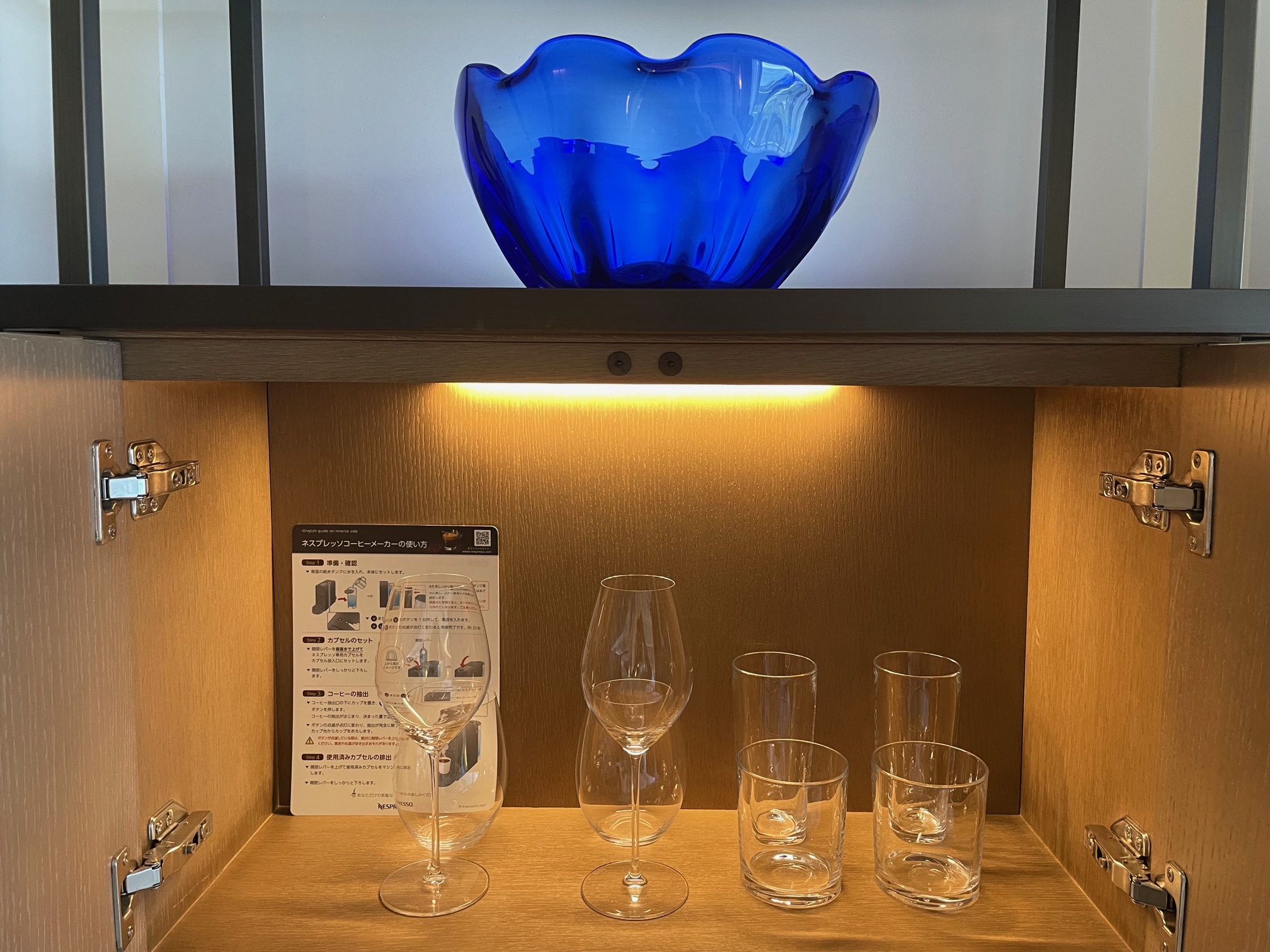 上段の扉を開けるとワイングラスなどグラスが4セット