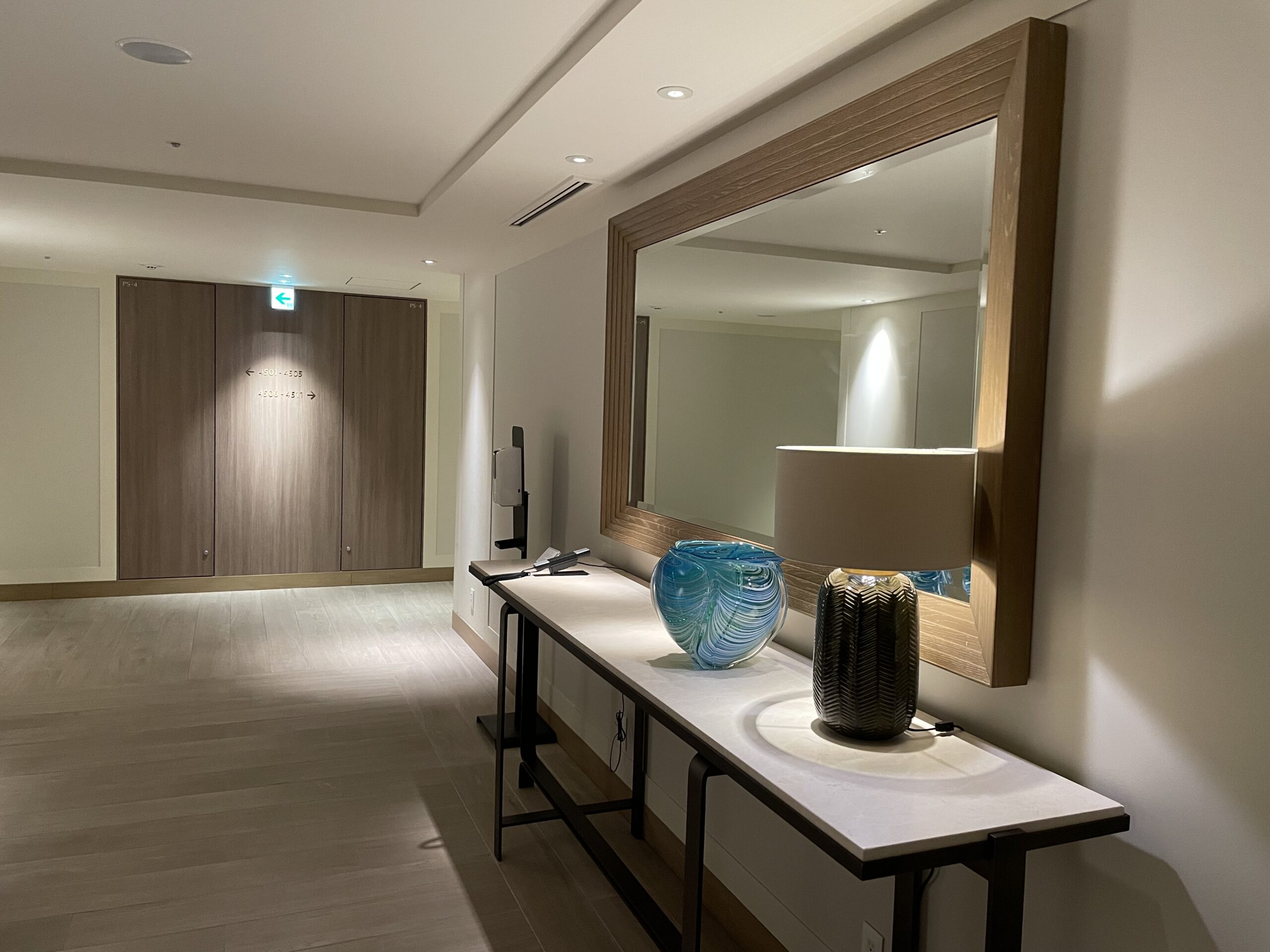廊下は落ち着いた雰囲気ですが高級感が漂っています