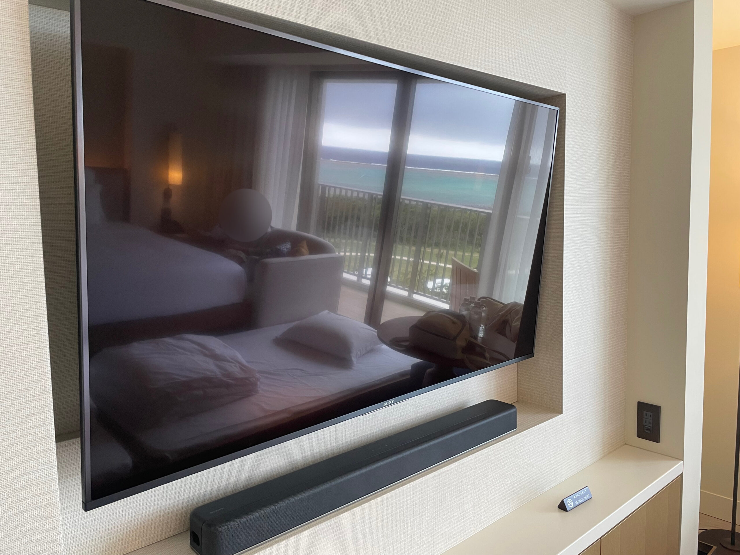 キャビネットの横にはテレビとサウンドバー