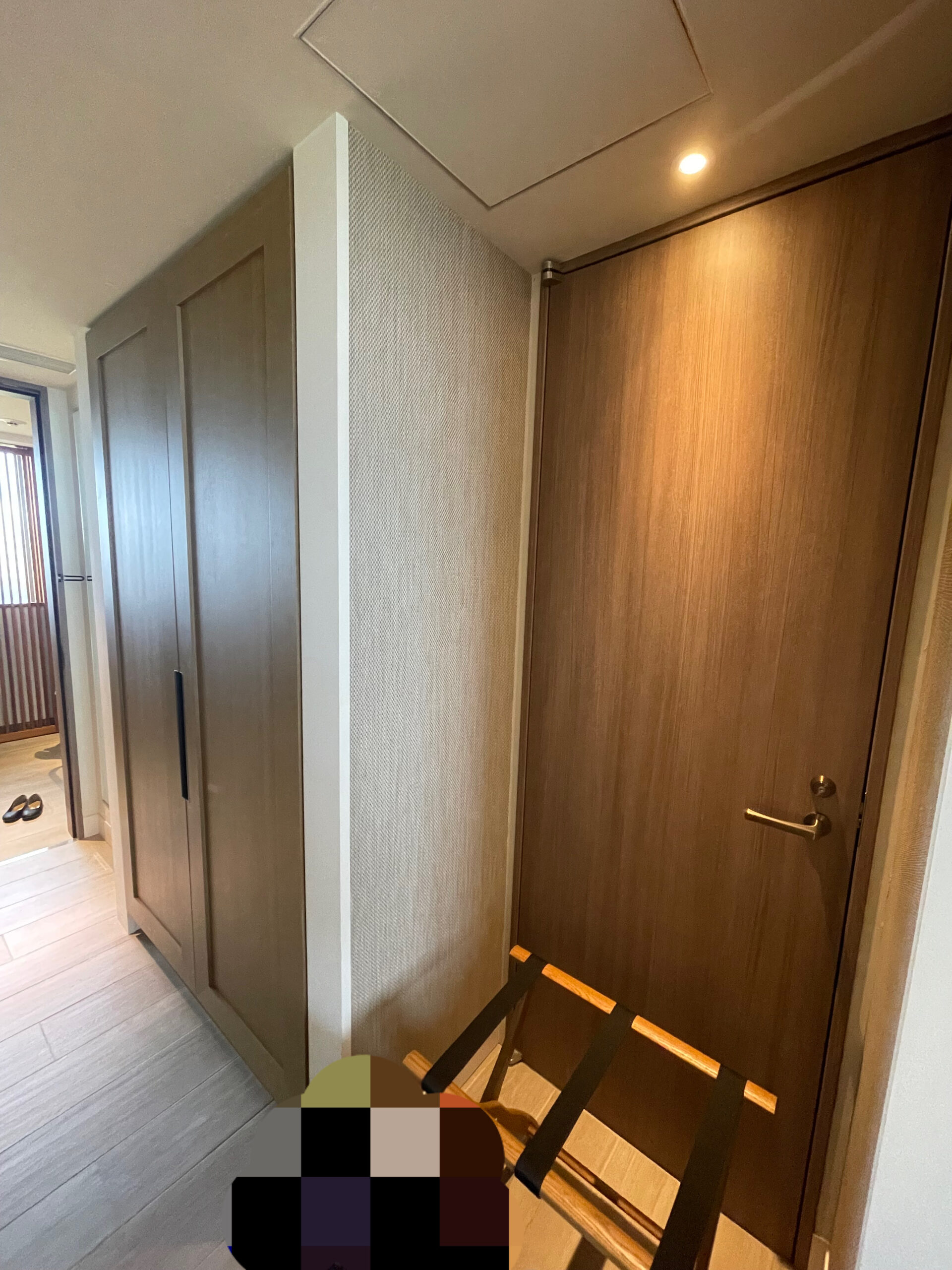 クローゼット隣にはラゲッジラックが置かれています。コネクティングルームのようでラゲッジラックの後ろには隣の部屋との扉があります