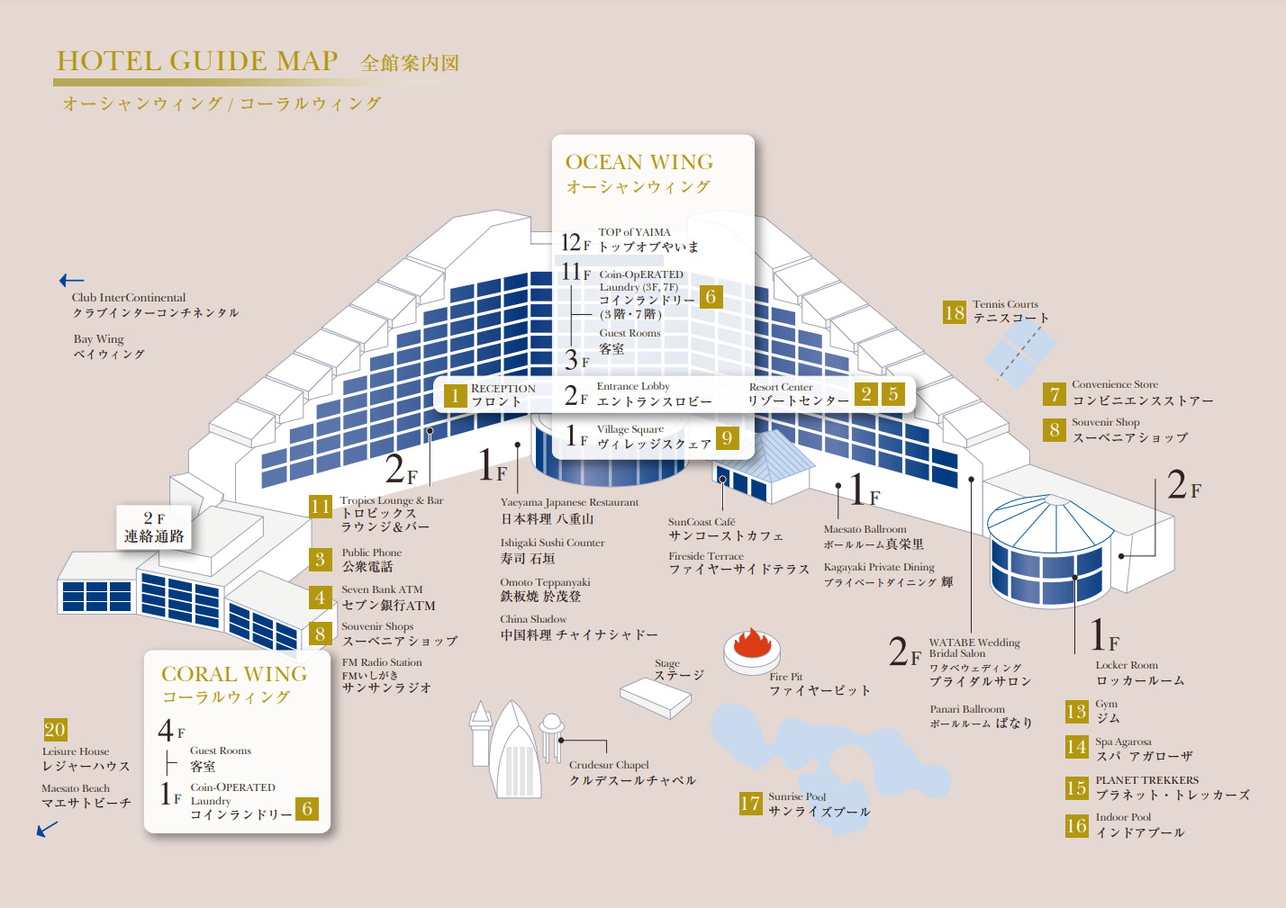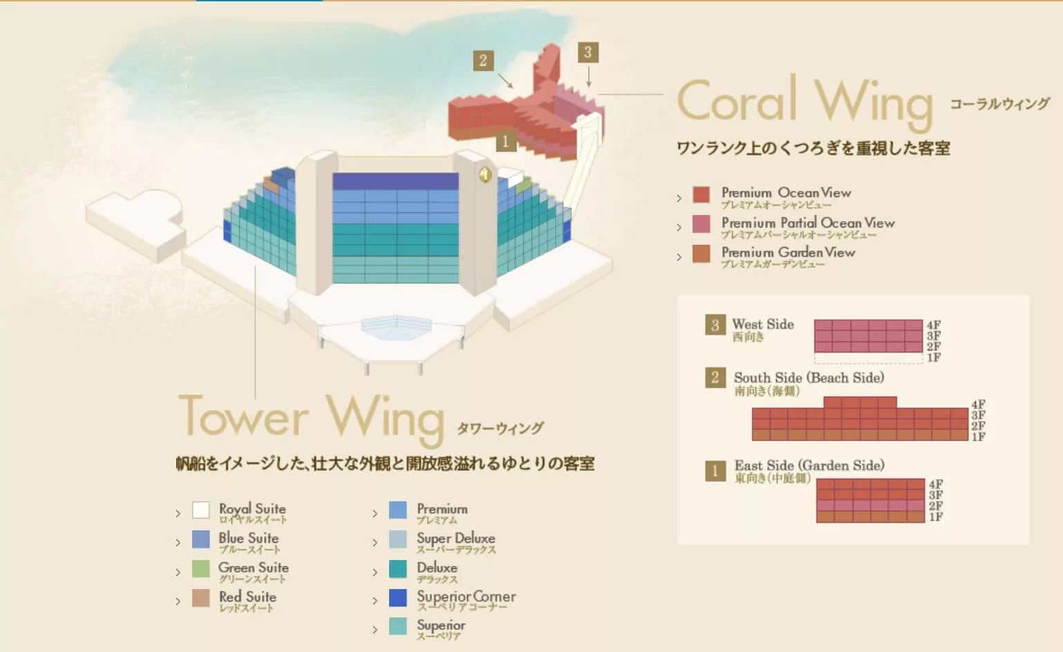 コロナ禍前の2018年に宿泊した時はタワーウイング(現オーシャンウイング)、コーラルウイングの2棟だけしかありませんでした。