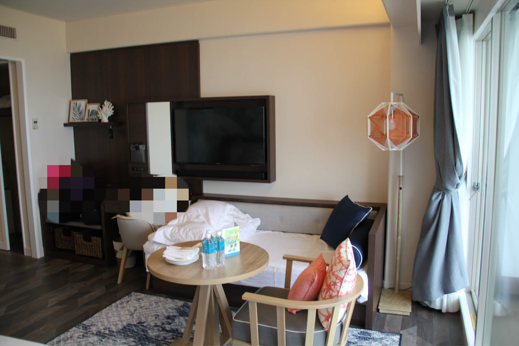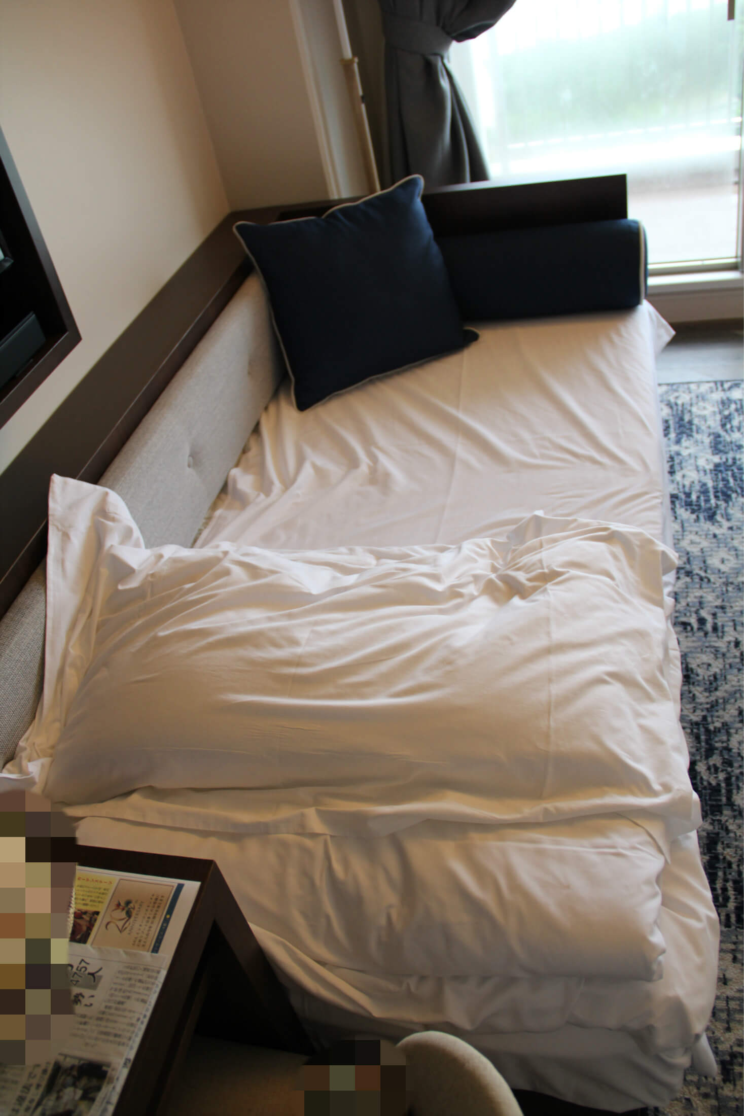今回は大人2名、小学生1名、添い寝の幼児1名で宿泊でしたのでエキストラベッドを入れてもらっています。いわゆるソファーベッドですね。