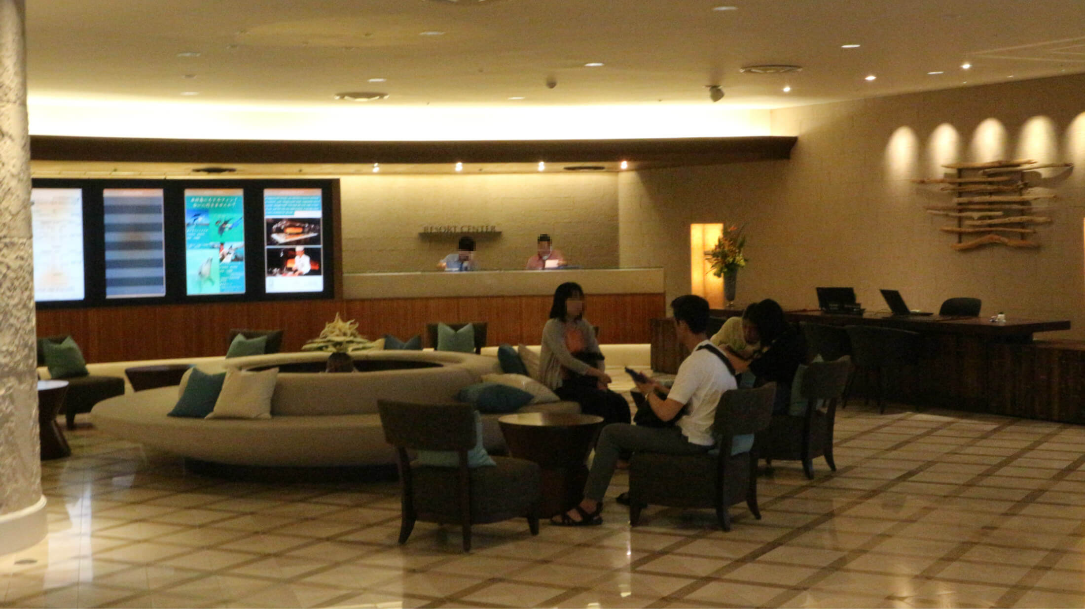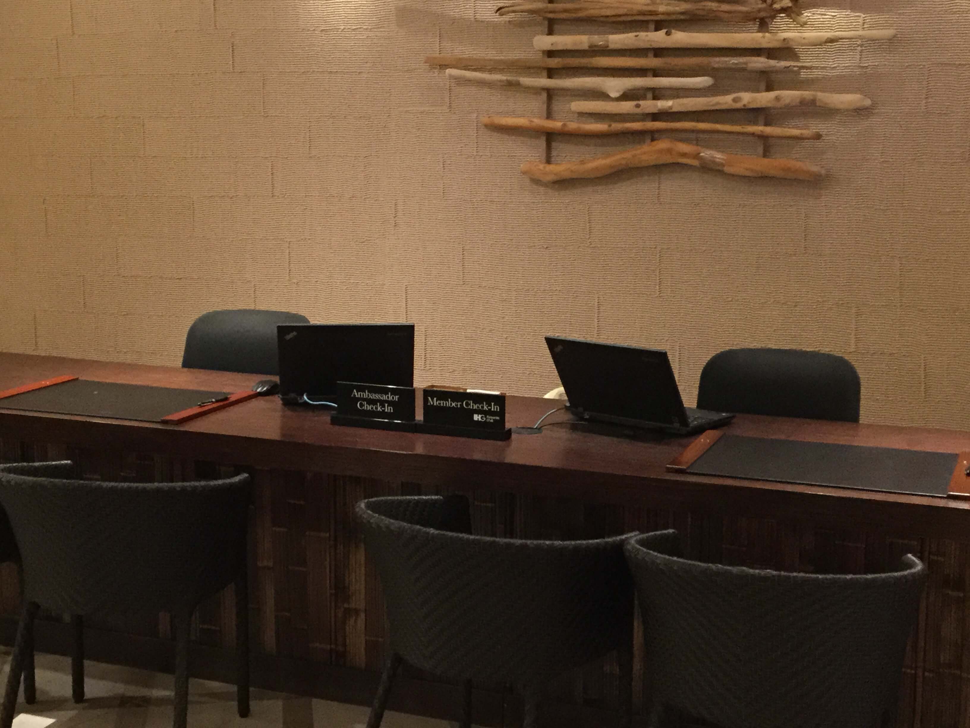 入り口入って左側のリゾートセンター横にIHGリワーズクラブ会員、インターコンチネンタルアンバサダーの専用チェックインカウンターがあります。