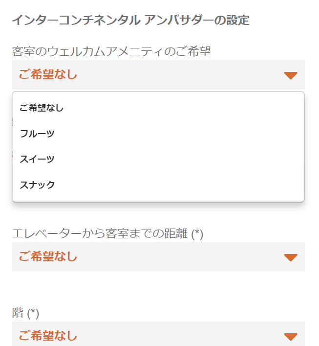 事前にIHGのホームページからスナックかフルーツかスイーツかを選択することができます。