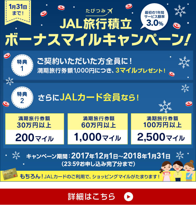 ちなみにJAL旅行積立の現在のキャンペーンは以下のようなものです。
