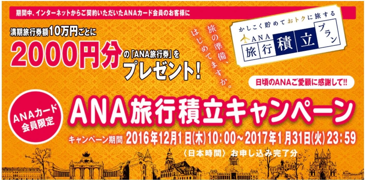 ANAもJALも旅行積立についてのキャンペーンをしばしば行っています。後で述べますがキャンペーンがなければ旅行積立はそれほどお得感がなく、僕はキャンペーンの時にしか旅行積立は申し込みません!
