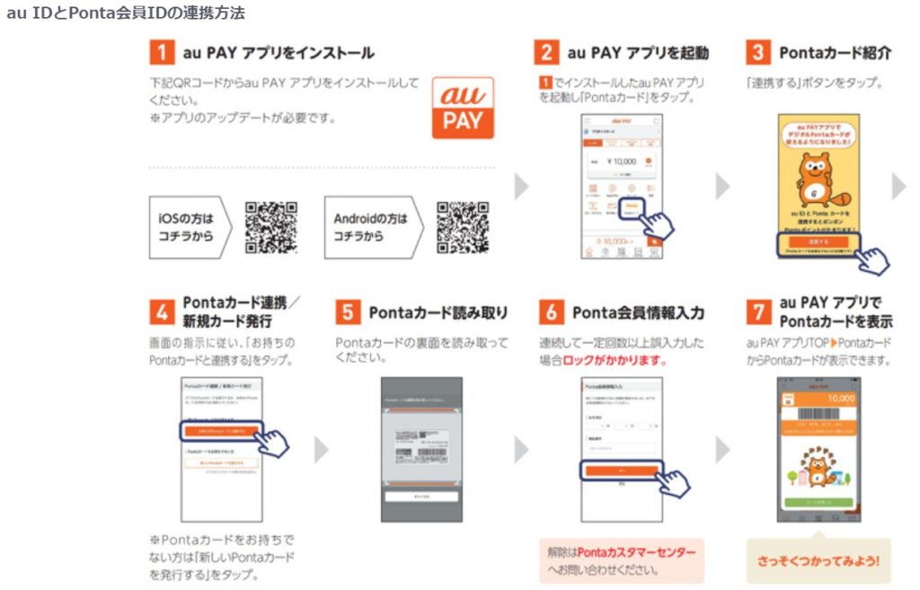 「au WALLET ポイント」から「Pontaポイント」との連携は簡単です。au PAYアプリ、あるいはau マイページから連携が可能です。以下の画像を参考に連携してみて下さい