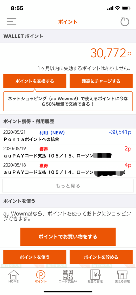 au PAYあるいはPontaポイントを使うまたは利用する度に、最終利用日の1年後まで有効期限が延長されていく仕組みのため、実質的に無期限なポイントとして保有することが可能となりました。