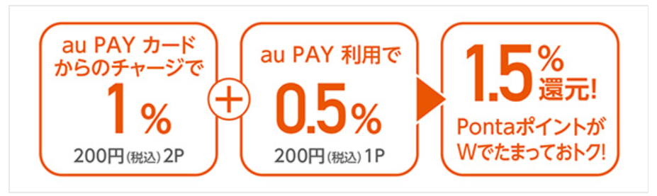 auPAYカードで残高チャージした上でau PAY支払いするとPontaポイント1.5%還元