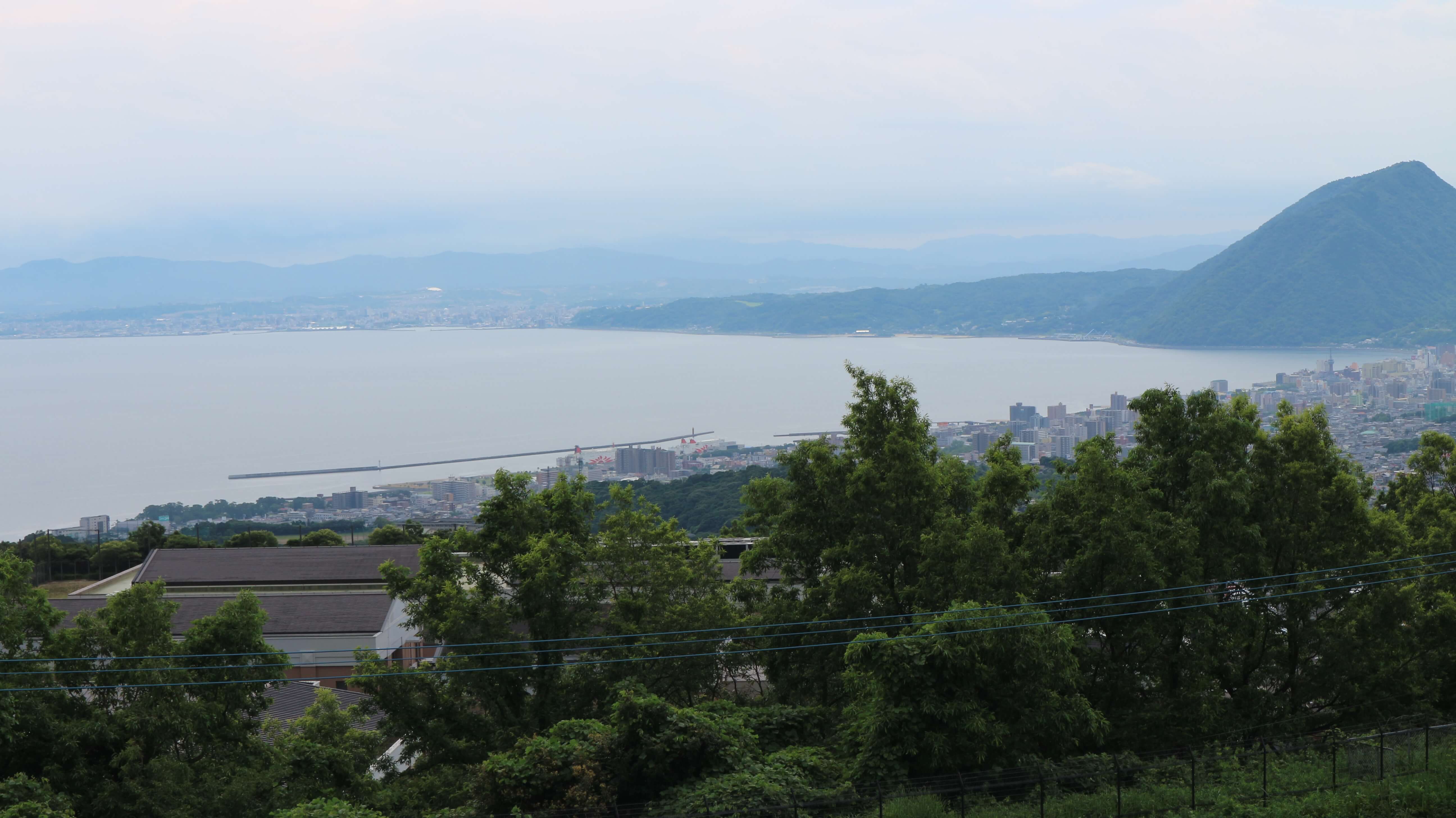 標高380mにあり、眼下に別府市内、別府湾の海岸線を一望でき、自然夜景遺産にも指定されています。下の写真では右手に見えるのが高崎山、対岸に見えるのが大分市街、別府湾手前にはさんふらわあが2隻停泊しているのが見えます。ちなみにこちらから車で数分走れば日本夜景遺産の「十文字原展望台」に行くことができますよ。