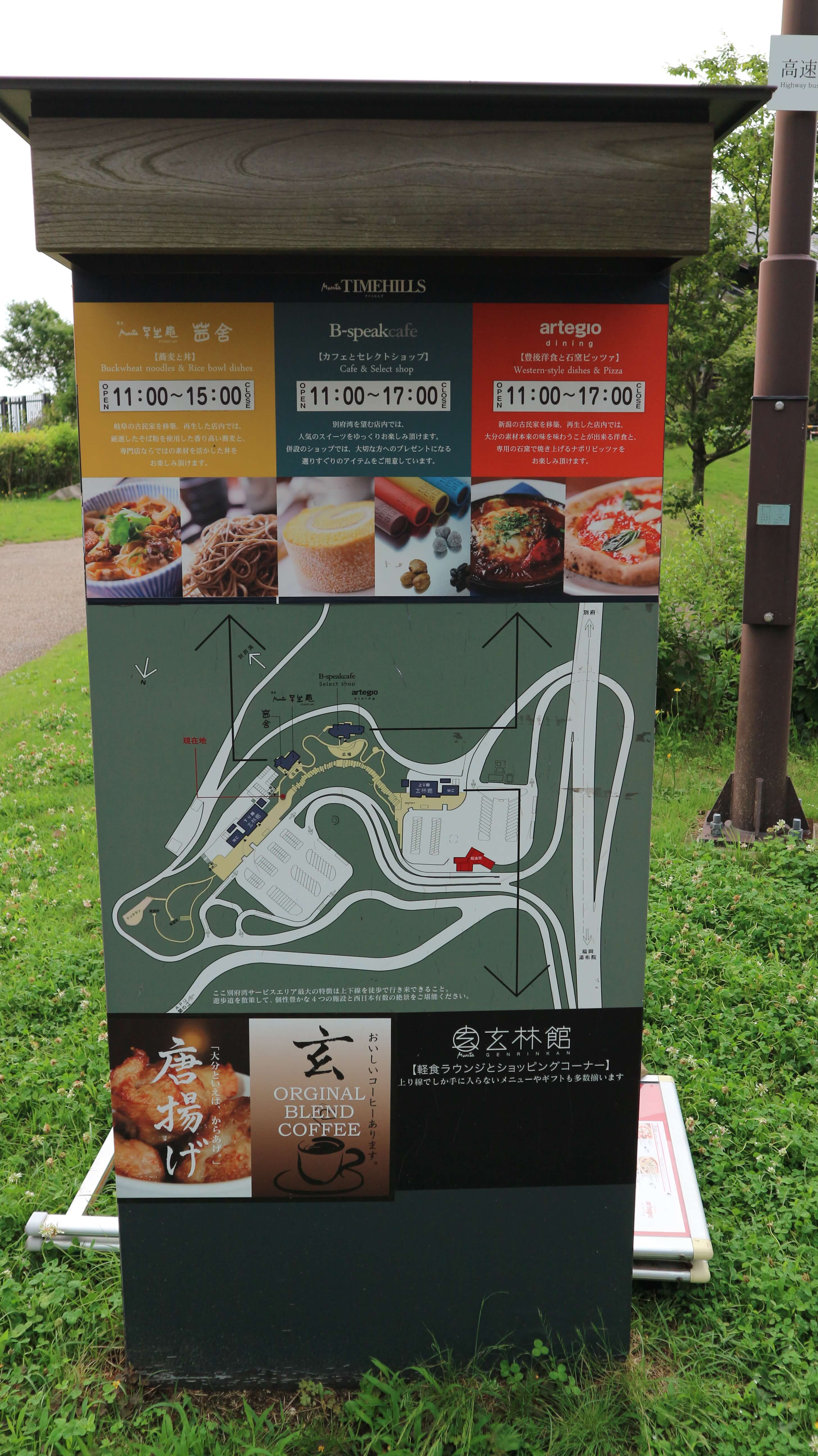 最近では珍しくなくなりましたができた当時は珍しく上下線のエリアを徒歩で行き来できる珍しい造りになっているサービスエリアで、上りと下りをつなぐ遊歩道「天空遊歩道」の途中にある日本の古民家2棟を含む、4つの建物が徒歩で回遊できます。