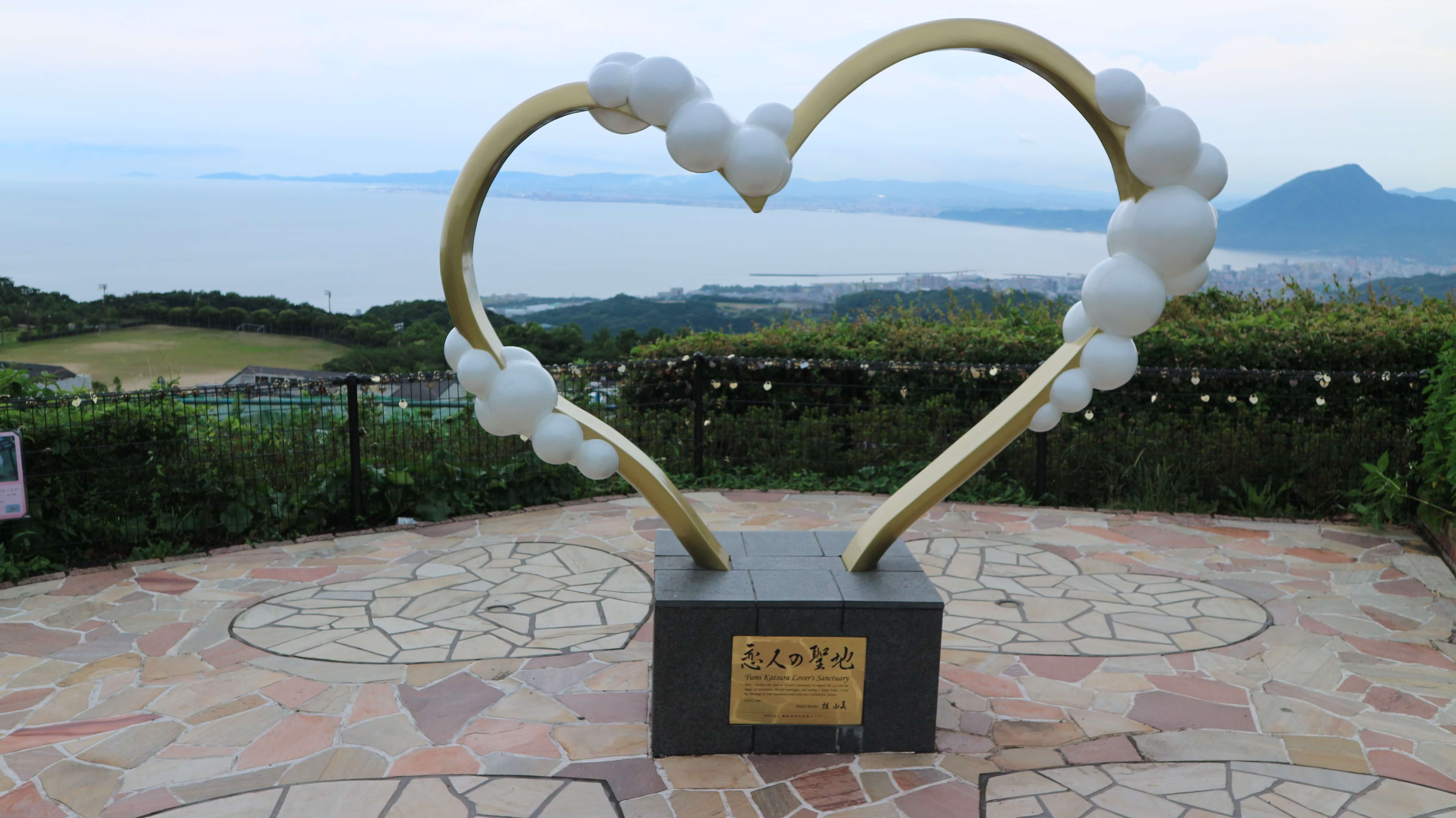 この別府湾サービスエリアは夜景の美しさからなのか「恋人の聖地」にも選ばれていて、可愛いハートのモニュメントが設置されています。モニュメントの奥の柵には南京錠がいっぱいかけられています。昔神戸のビーナスブリッジにもこんな光景がありましたね~