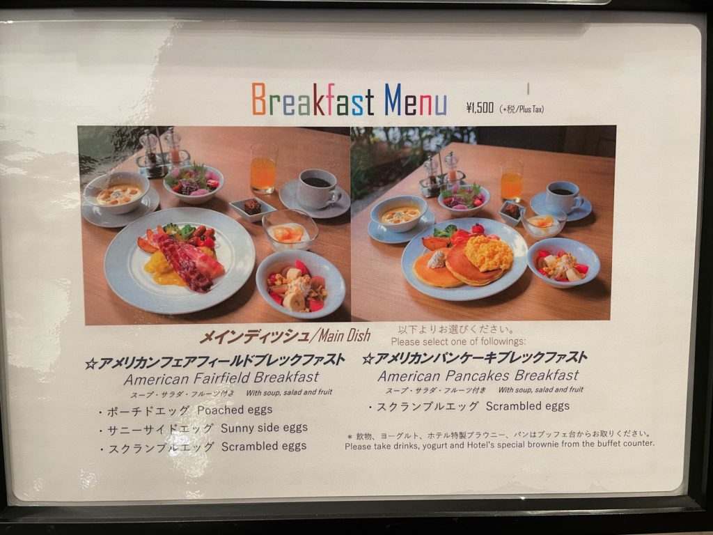 2021年3月時点でのフェアフィールド・バイ・マリオット大阪難波の朝食は以下のセットメニューとなっています。