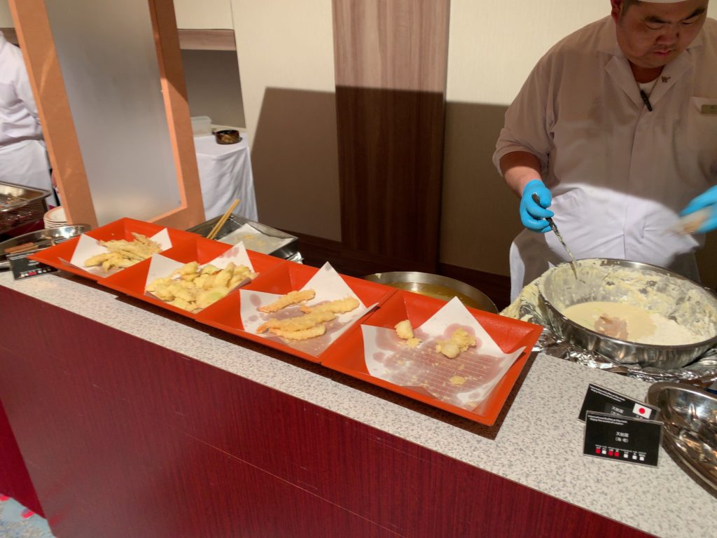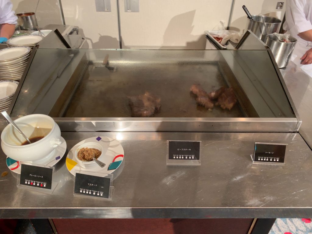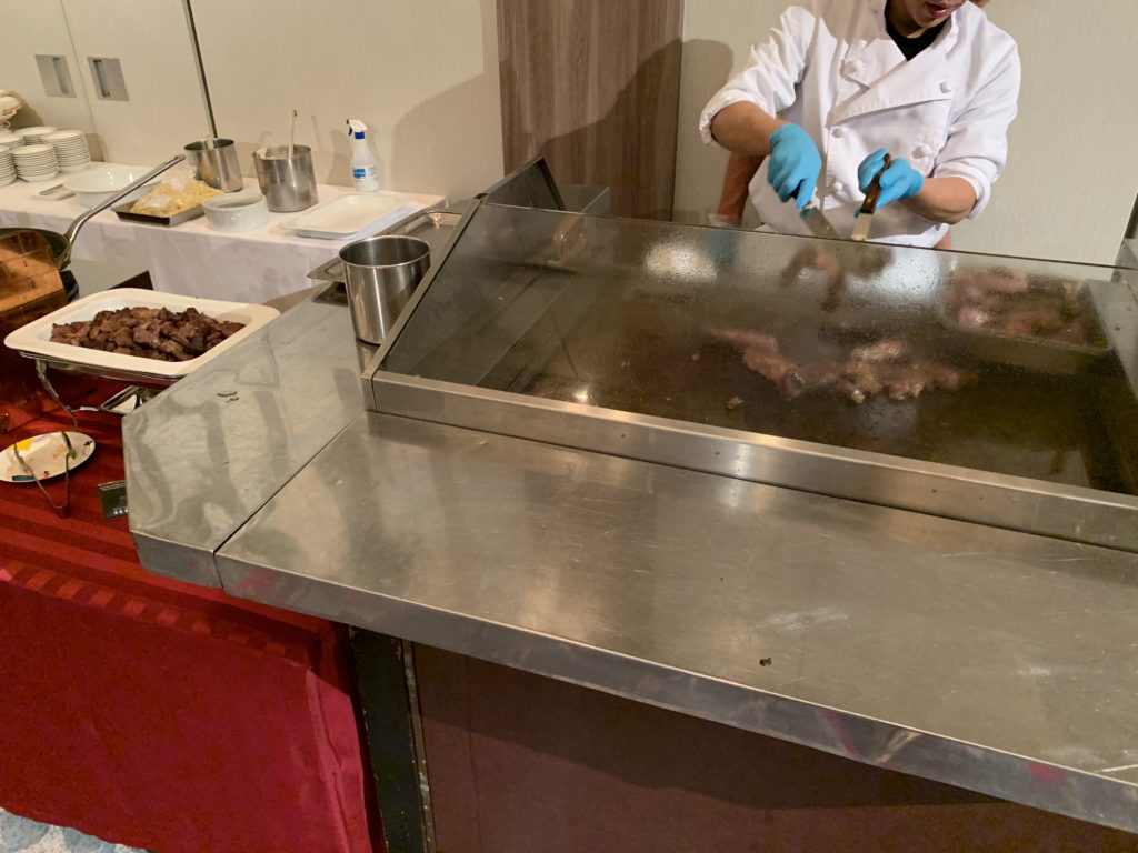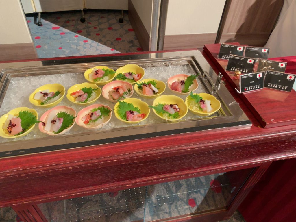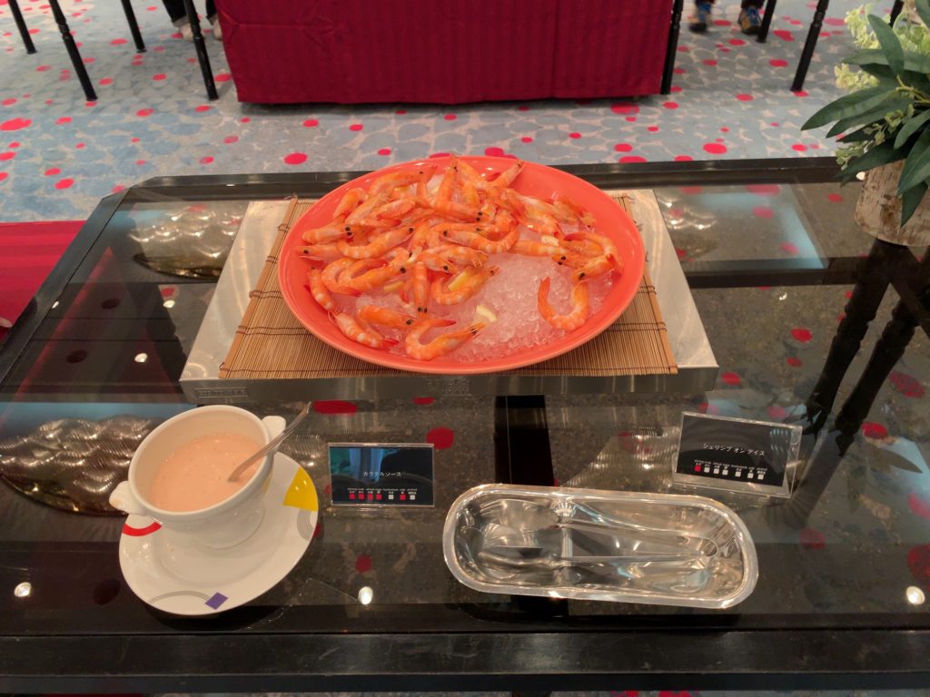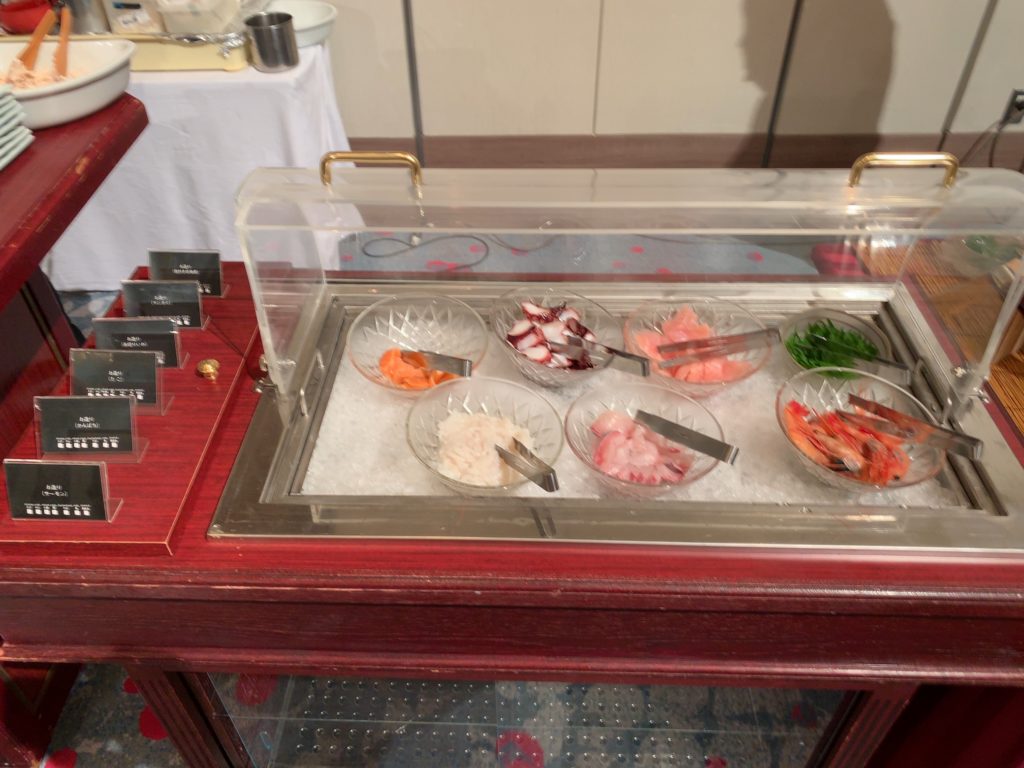 後にご紹介するようにステーキや焼き蟹、お造り、お寿司なども食べ放題のビュッフェにアルコールを含むフリーフロー付きで8500円となります!